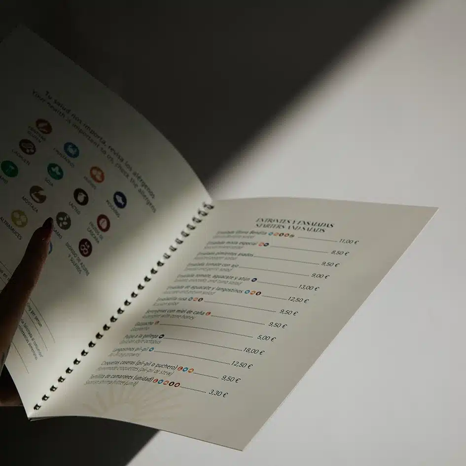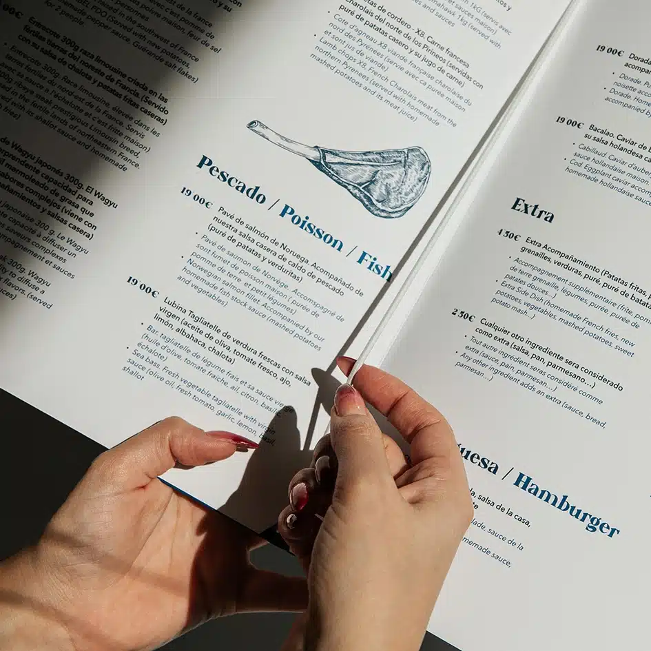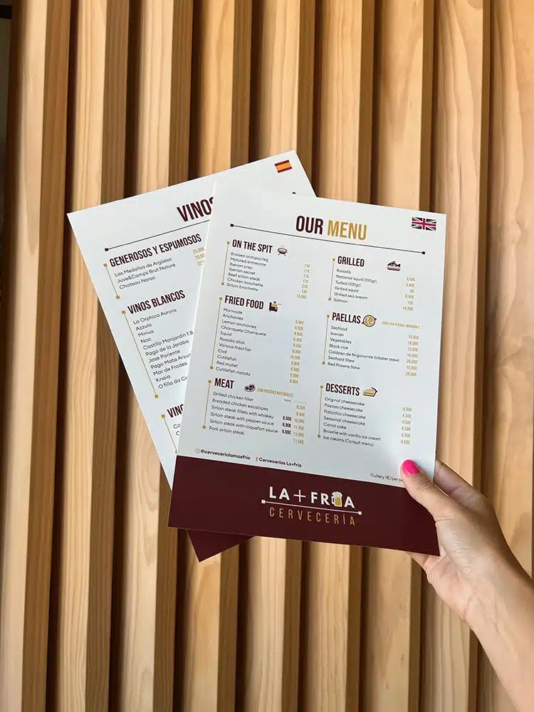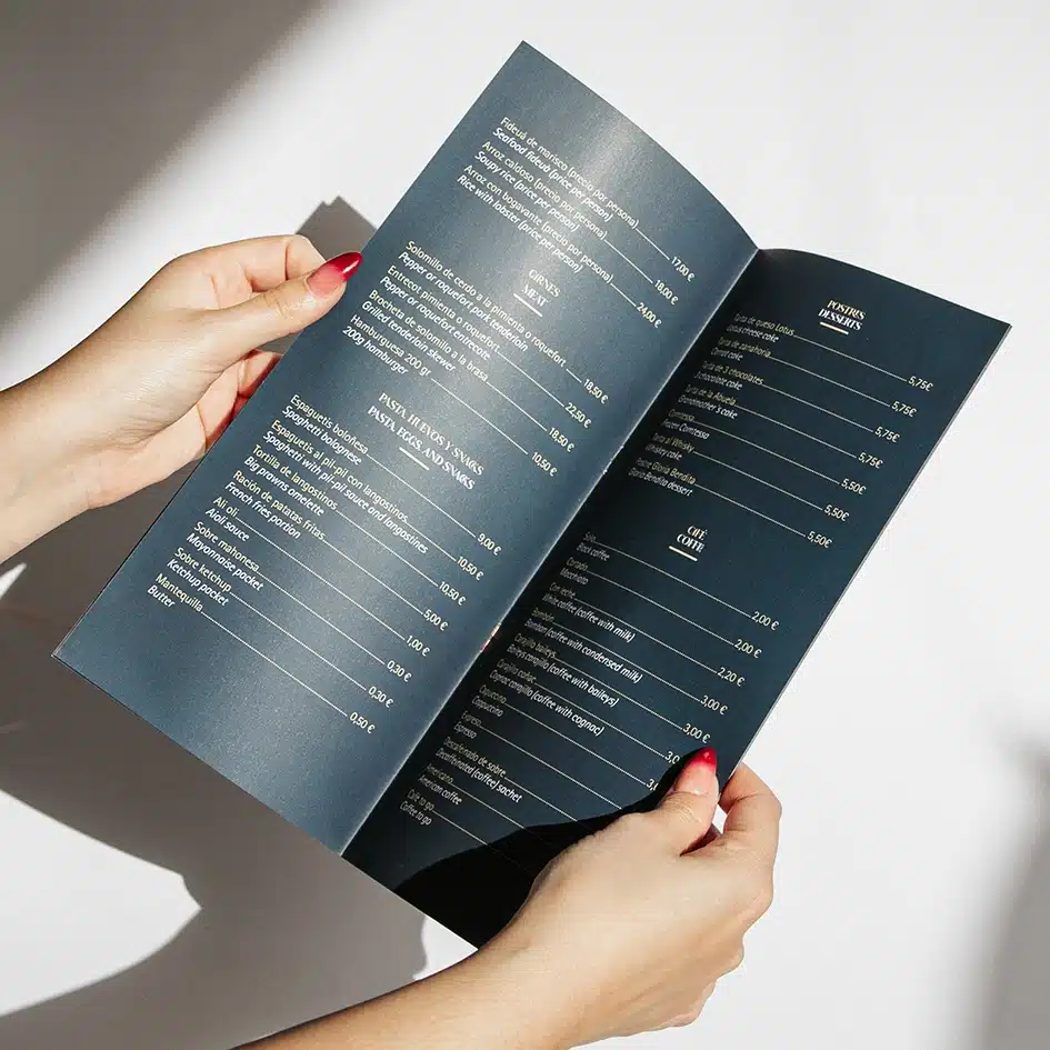 4. Impresión de Alta Calidad: Utilizamos materiales de primera calidad para garantizar que tus cartas sean duraderas y resistentes al uso diario. Los colores serán vibrantes y nítidos, y la calidad del papel destacará la calidad de tu restaurante.