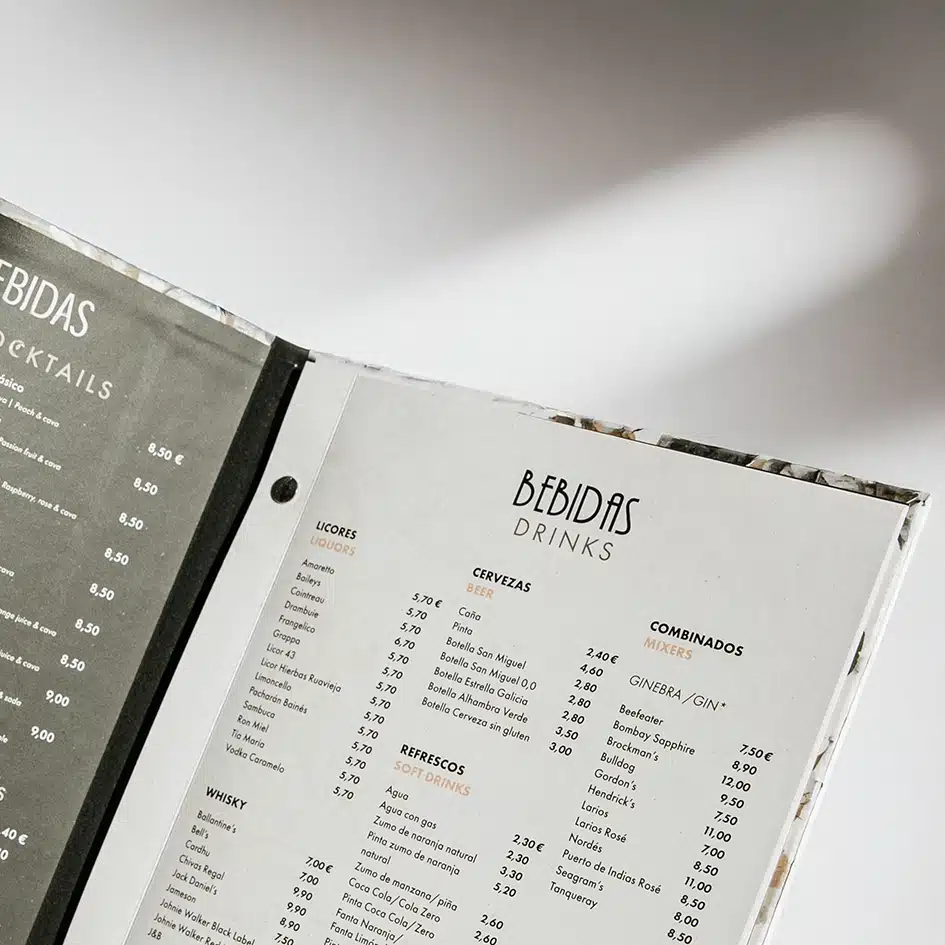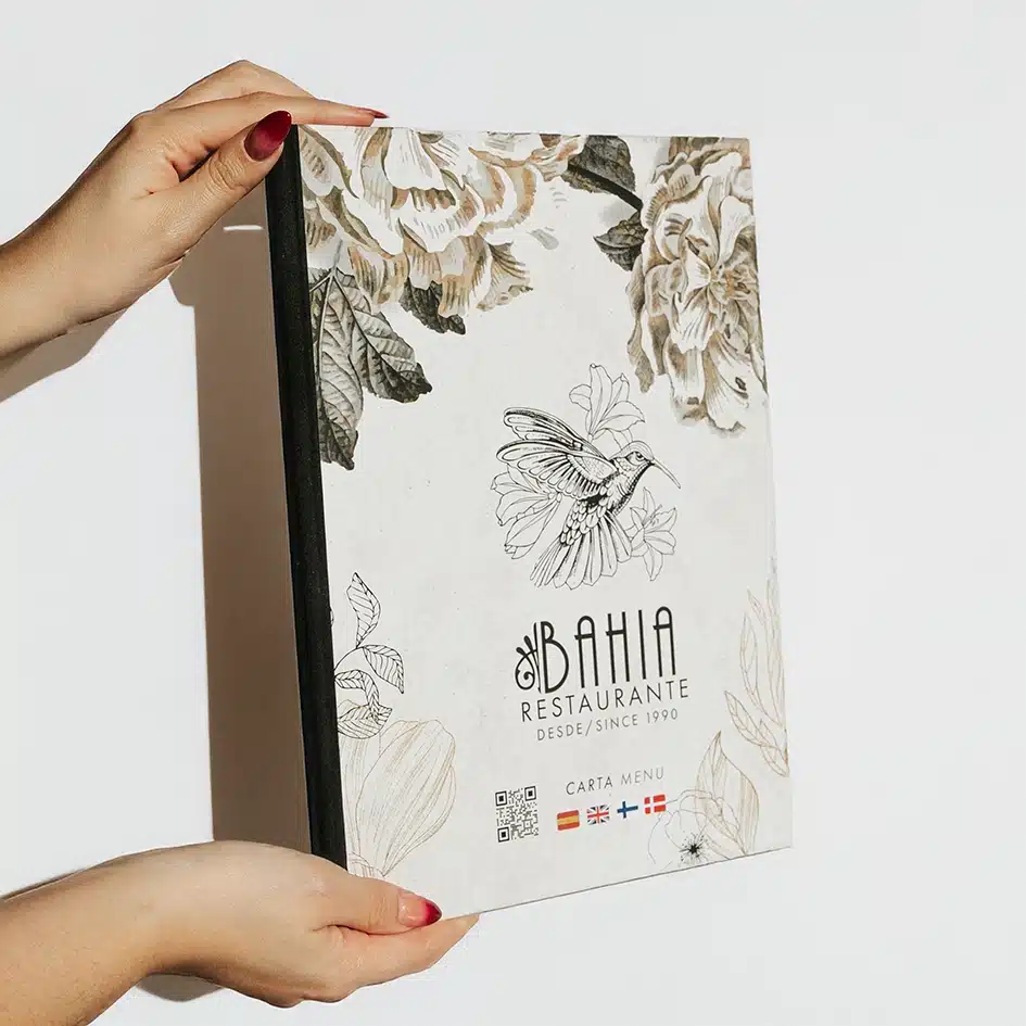 1. Diseño exclusivo: Nuestra carta de restaurante personalizada es una expresión de tu estilo y marca. Trabajaremos de cerca contigo para crear un diseño que refleje la esencia de tu restaurante, ya sea elegante, moderno, rústico o de cualquier otro estilo que desees.